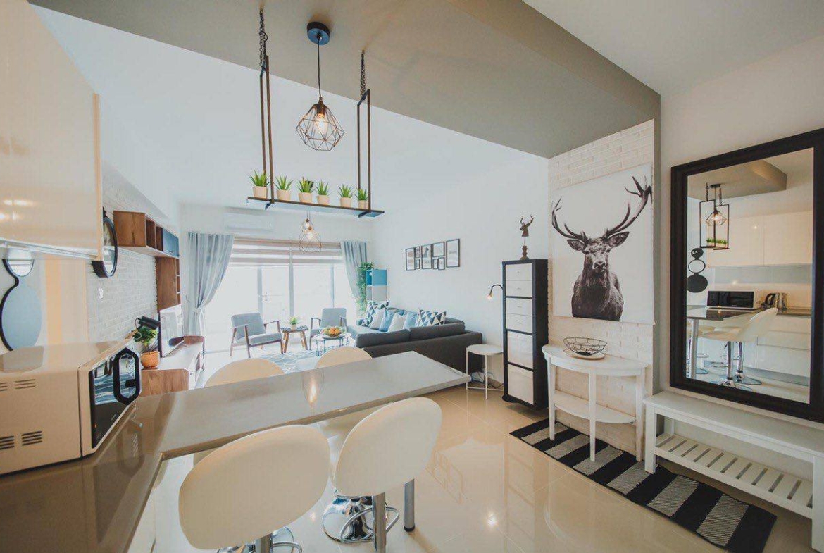 The size of the studio unit: 52 meters of interior space + 8 meters of balcony
