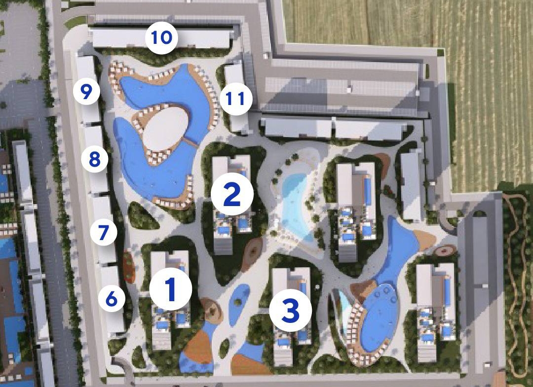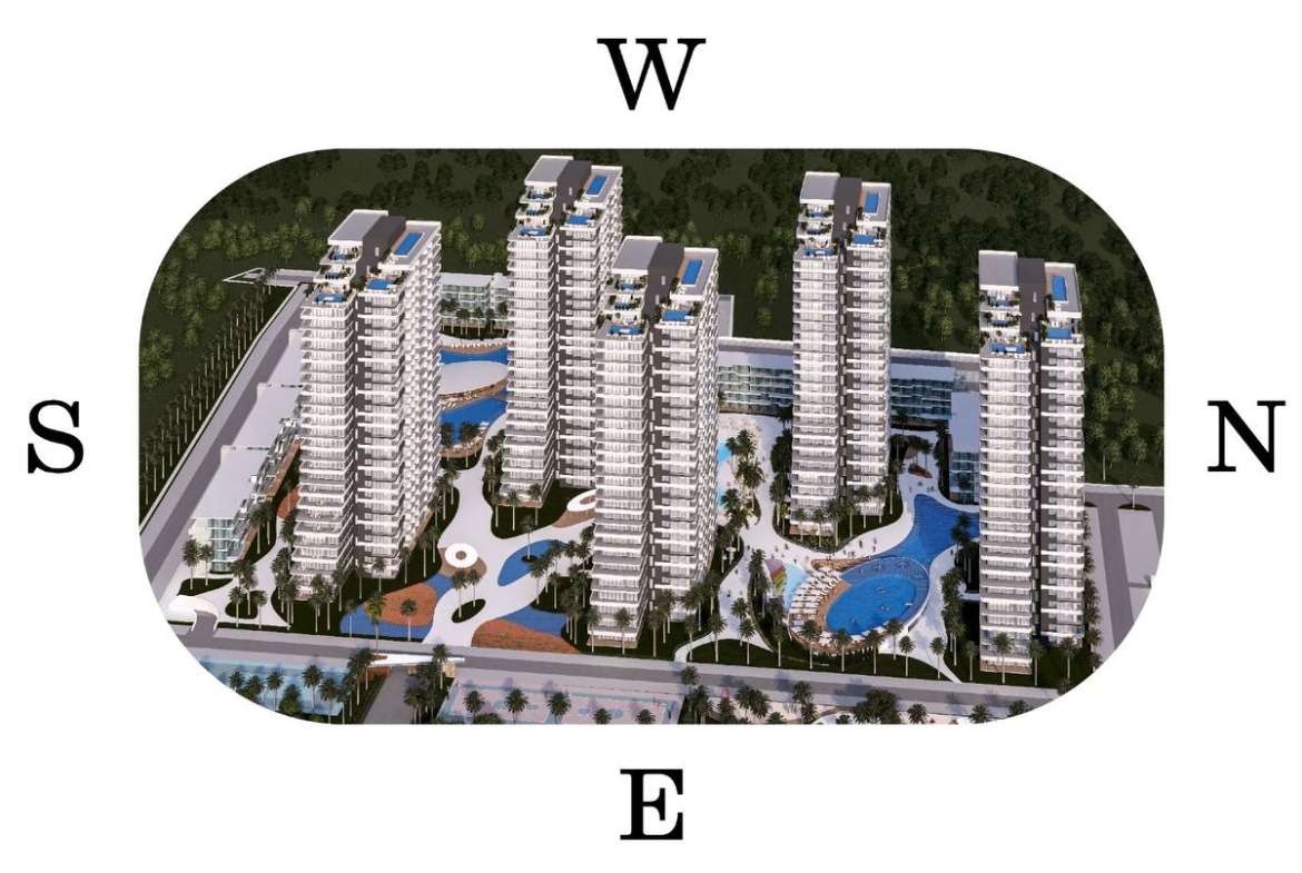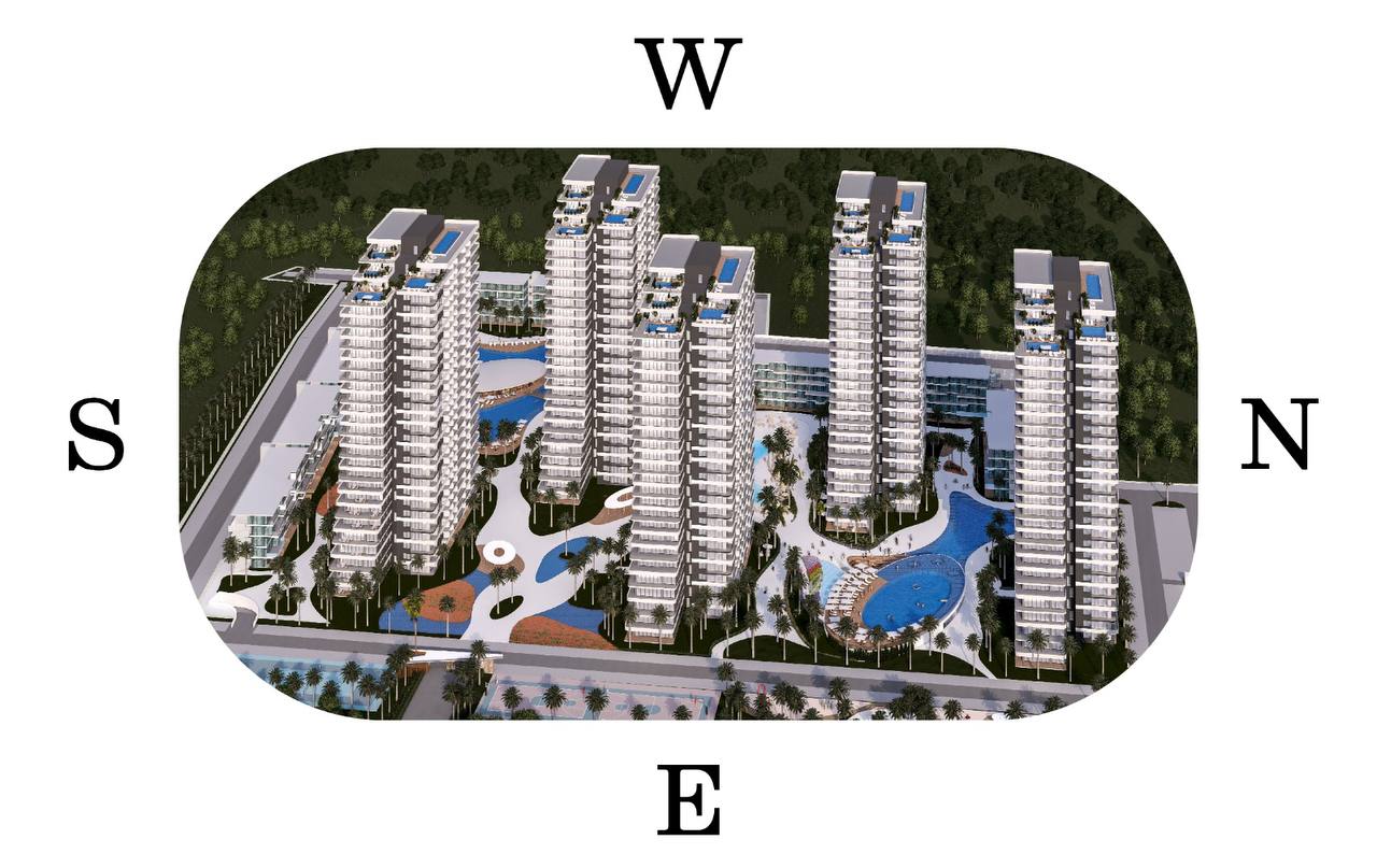🏝 together with a 5-star hotel (🌟🌟🌟🌟🌟) at the entrance of the complex and with the largest swimming pool on the island in an area of 4000 square meters