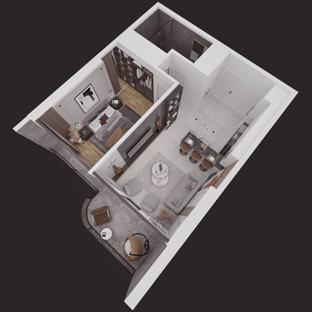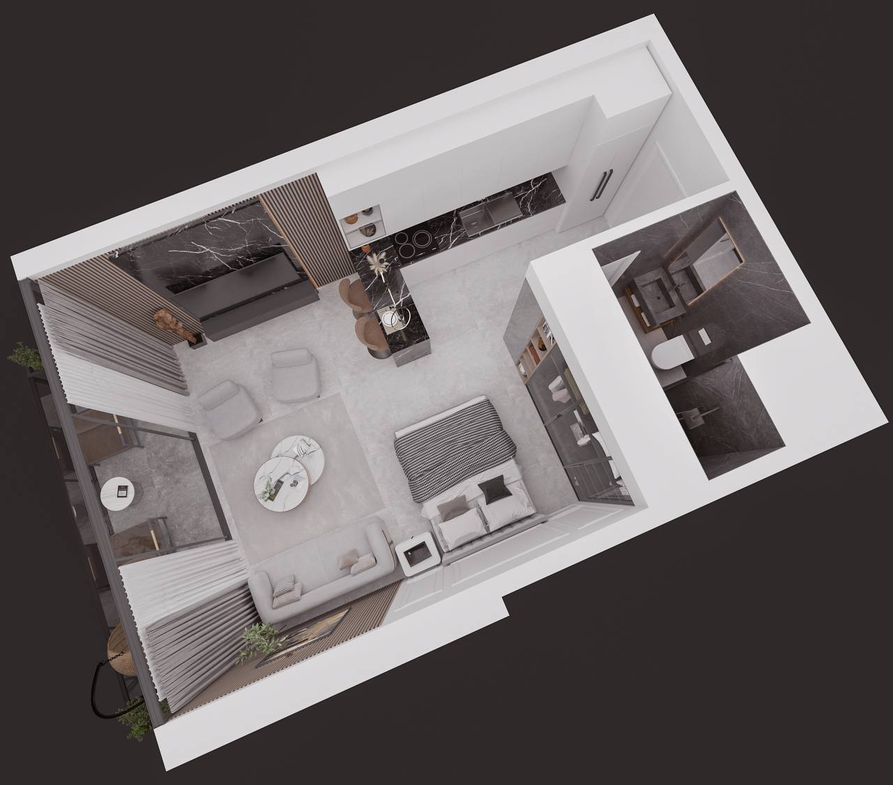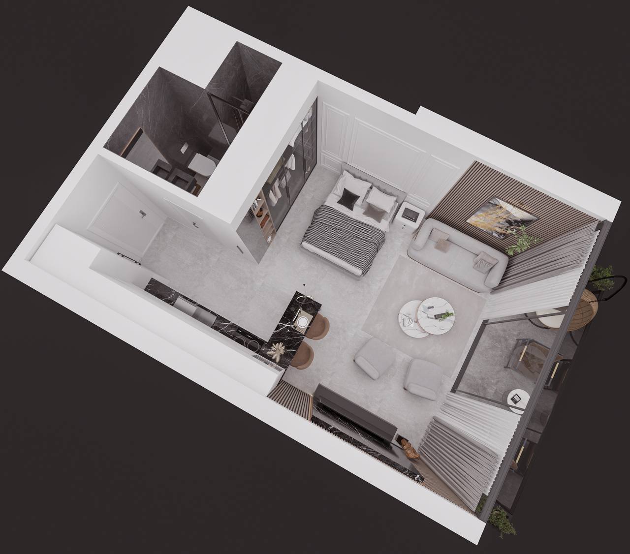 Area of studio unit: