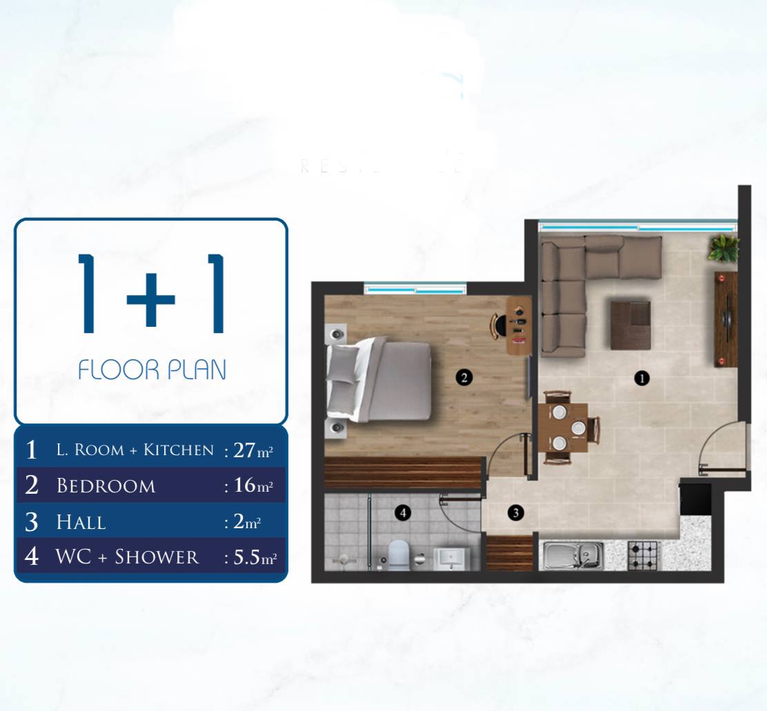 • Emlak Tipi: 1+1, 2+1, 3+1, Apartman